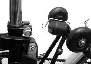 Auch wenn der Hinterbau des Bromptons - anders als Neulinge oft befürchten - beim Fahren nicht einfach zusammenklappt (vor BMX-Manövern sei dennoch gewarnt!), kann das lose Hinterteil manchmal lästig sein.